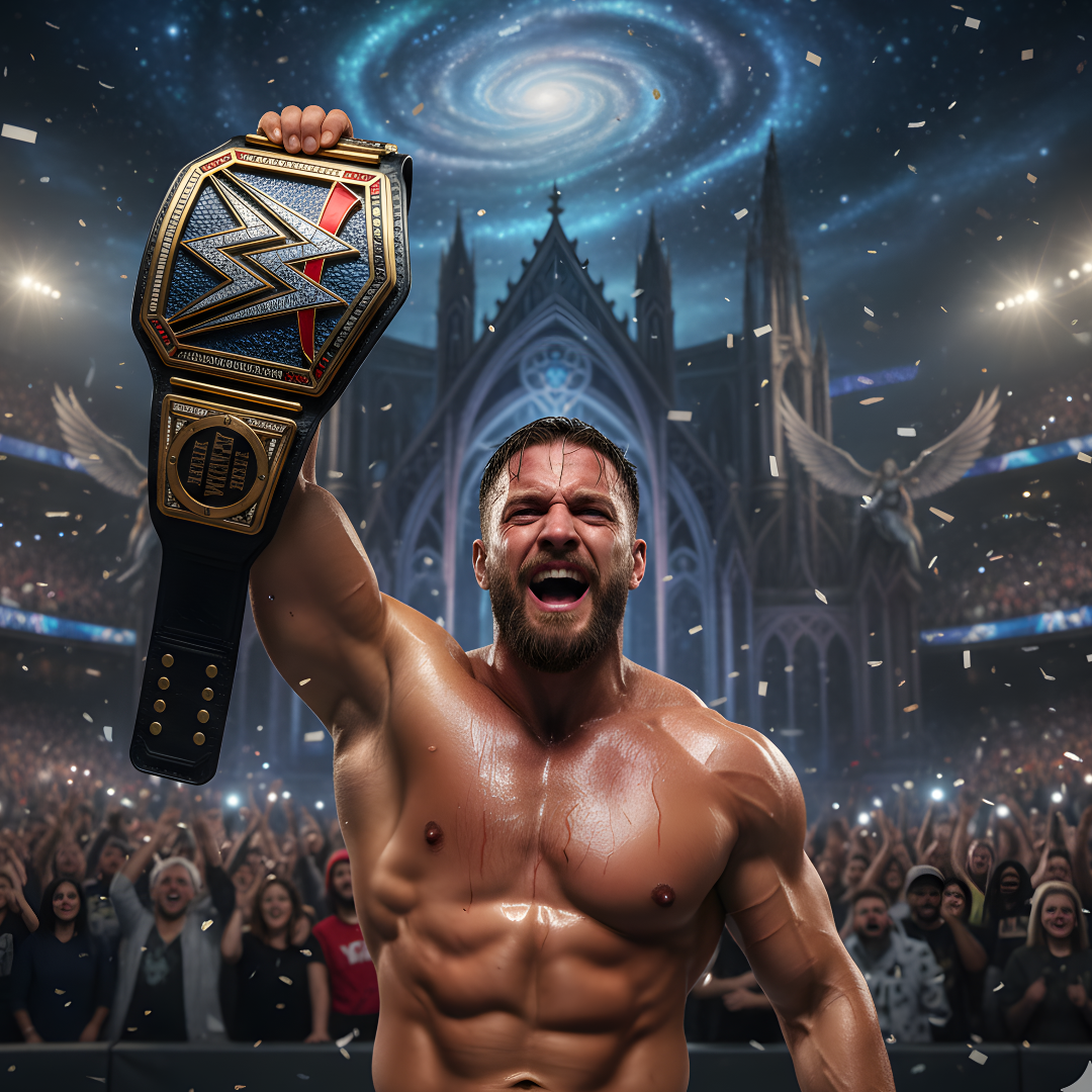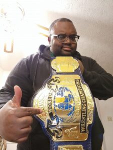 "World Heavyweight Wrestling Champion" gothic ribbon design